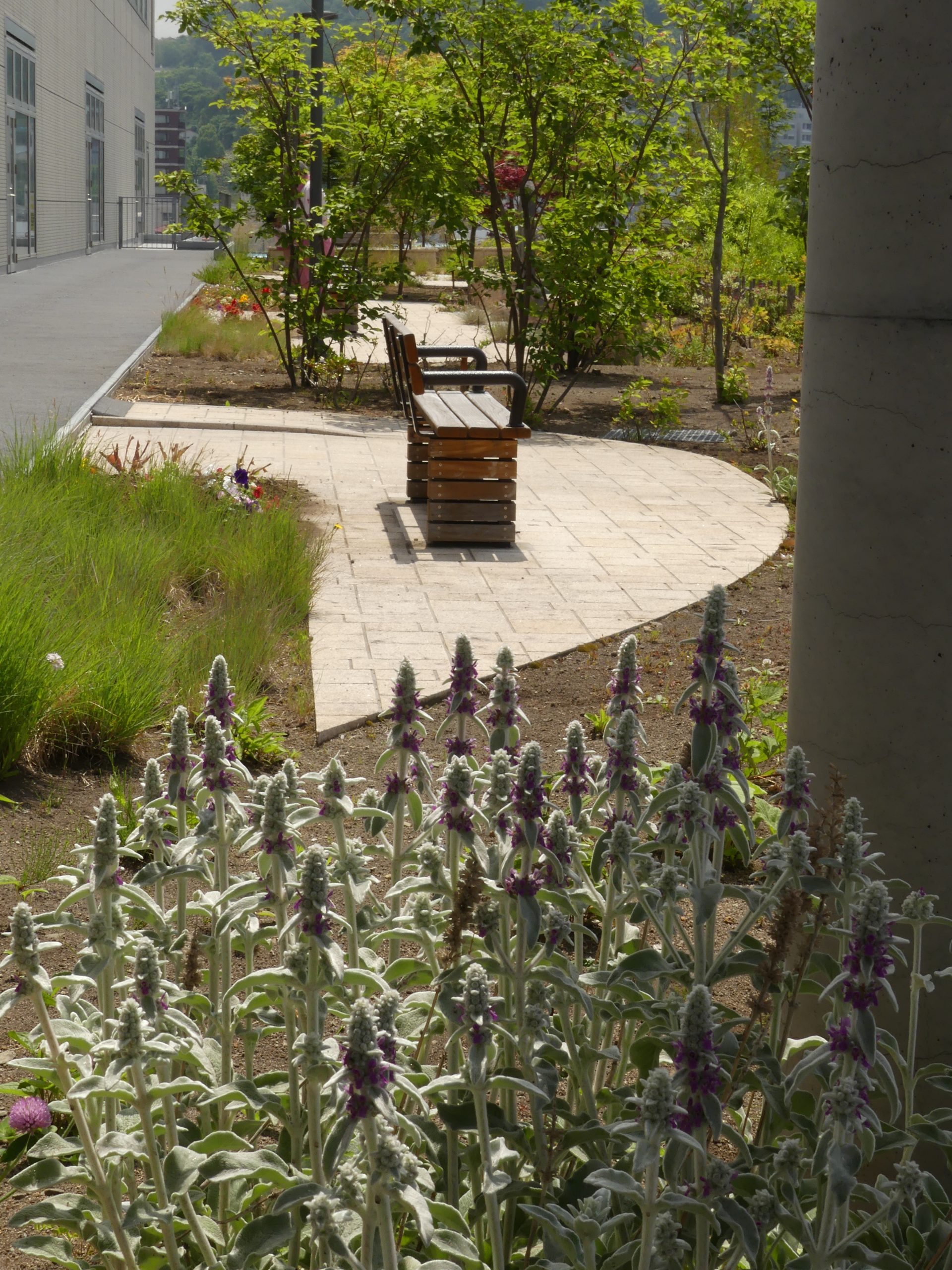 他にも色々な花が咲き、お天気の良い日はベンチで休憩されている方がいらっしゃいます。