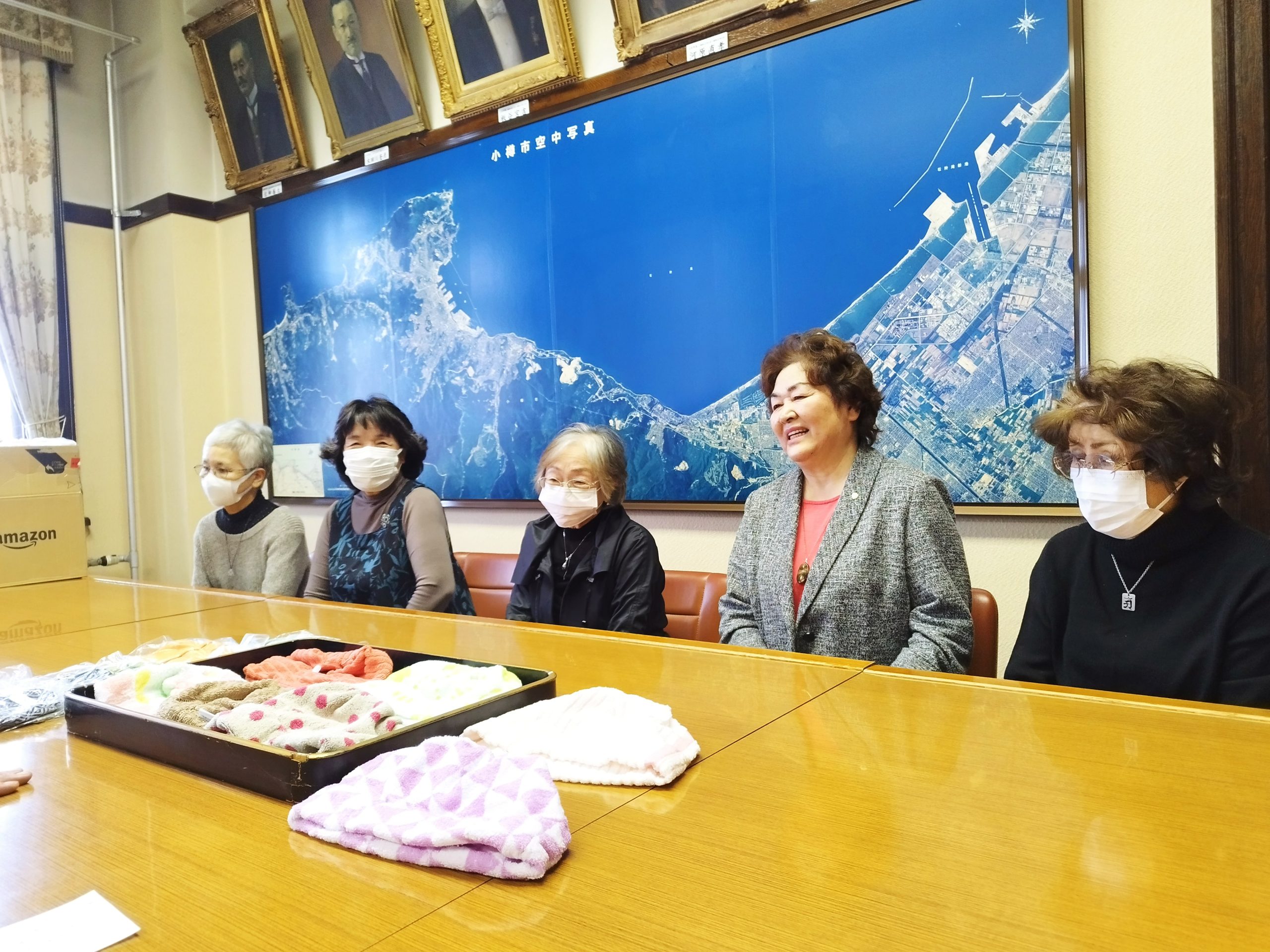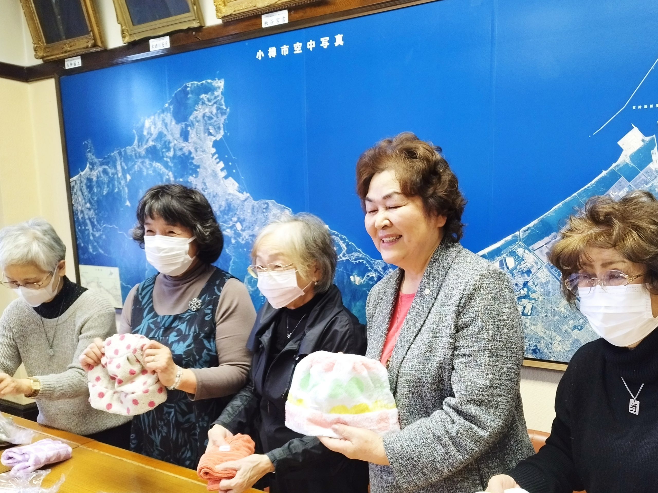 平成30年からタオル帽子を御寄贈いただいている「小樽つむぎの会」の皆さんから、今年もタオル帽子250枚が届きました。