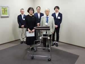 小樽市赤十字奉仕団創立70周年の記念として、当院へ歩行器を寄贈いただけることとなり、令和6年9月26日、当院応接室にて贈呈式を執り行いました。 同団迫利恵委員長よりご寄贈品を拝受し、当院並木昭義病院局長からは、「大変立派な歩行器をありがとうございます。いただいた歩行器は患者さんのために大切に使用させていただきます。」と謝意を述べ、お礼状を贈呈しました。