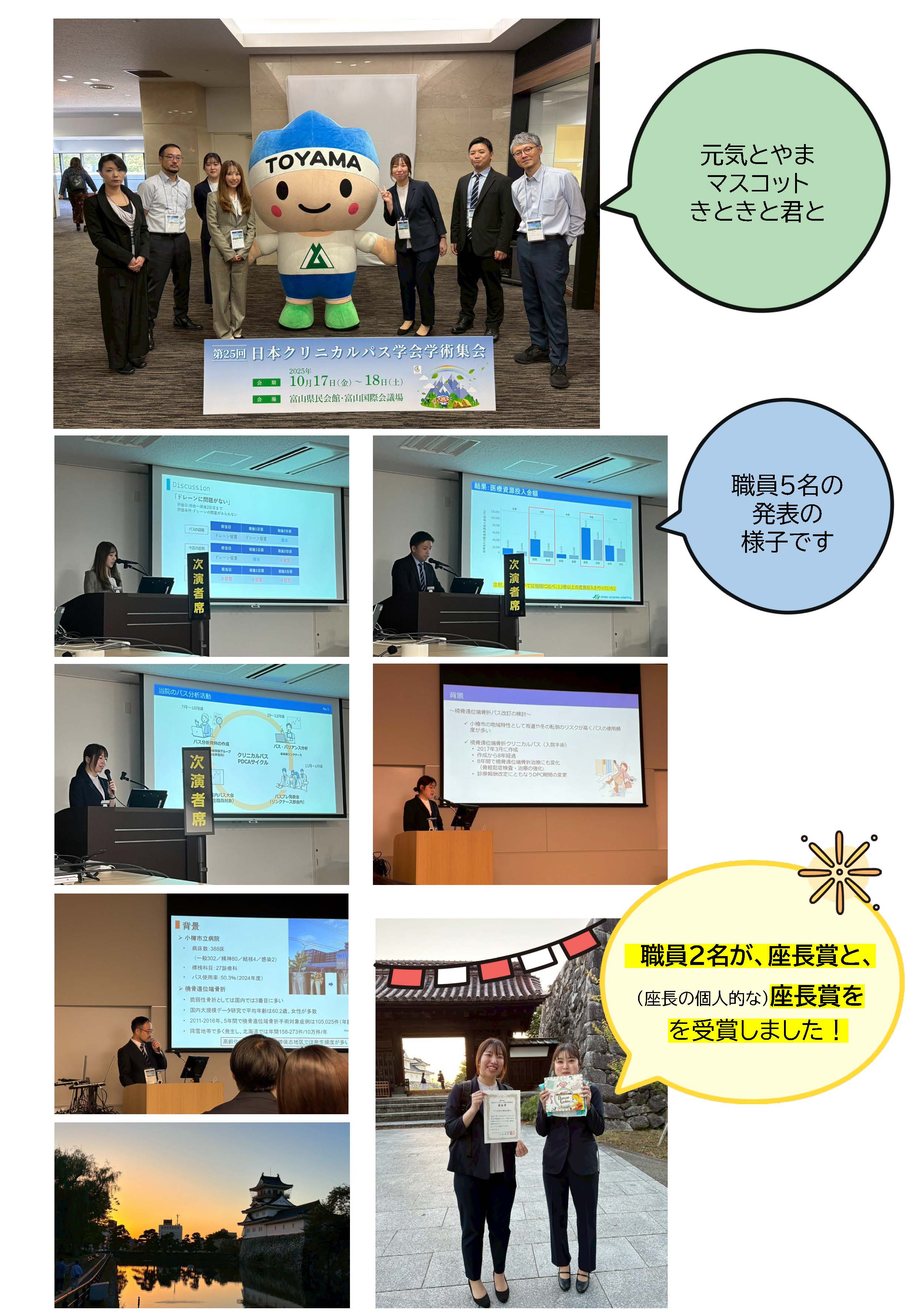 2025年10月17日から18日に富山県民会館・富山国際会議場(富山県富山市)で開催された「第25回日本クリニカルパス学会学術集会」に当院から7名の医療スタッフが参加し、研究成果を発表いたしました。