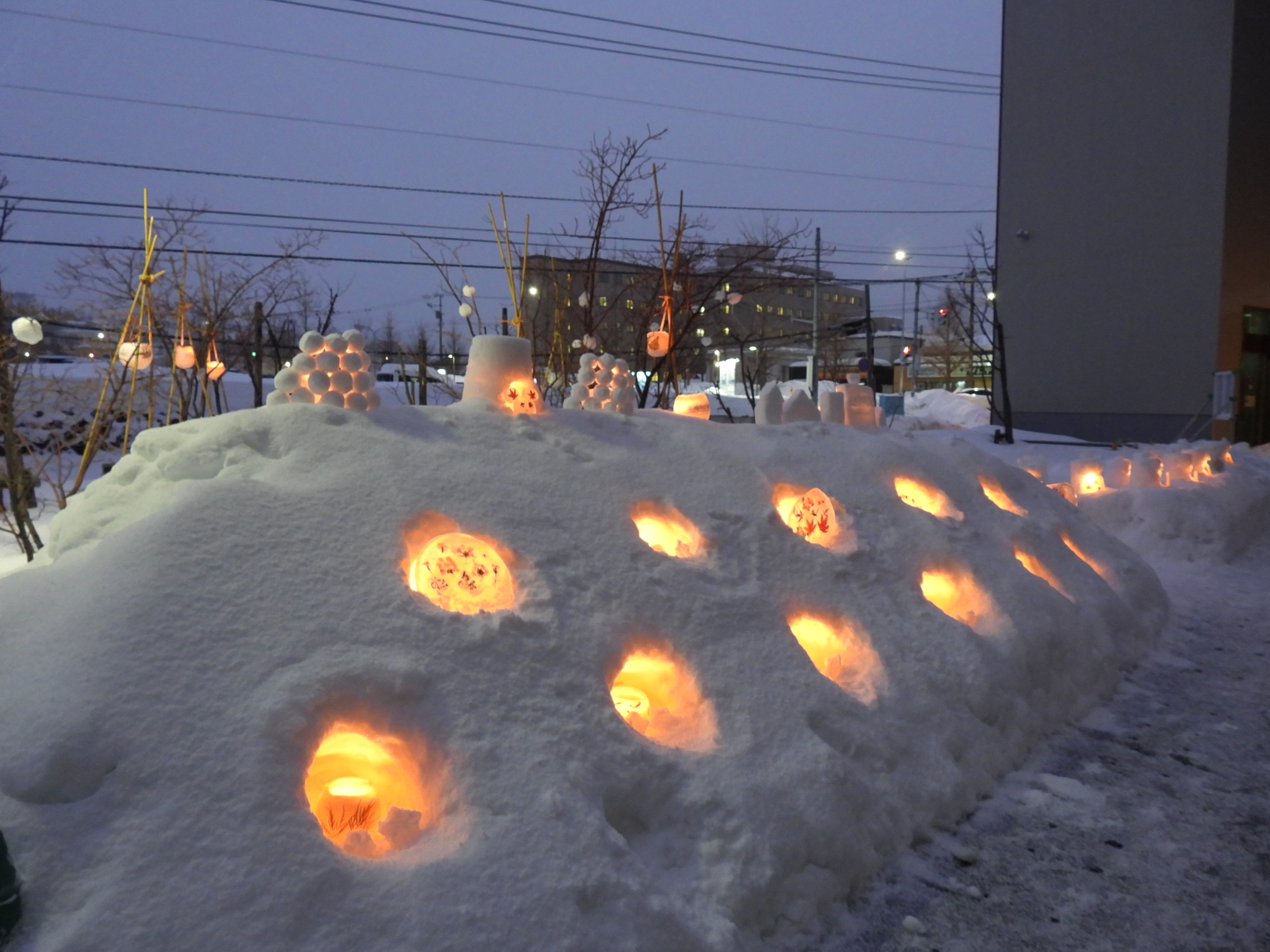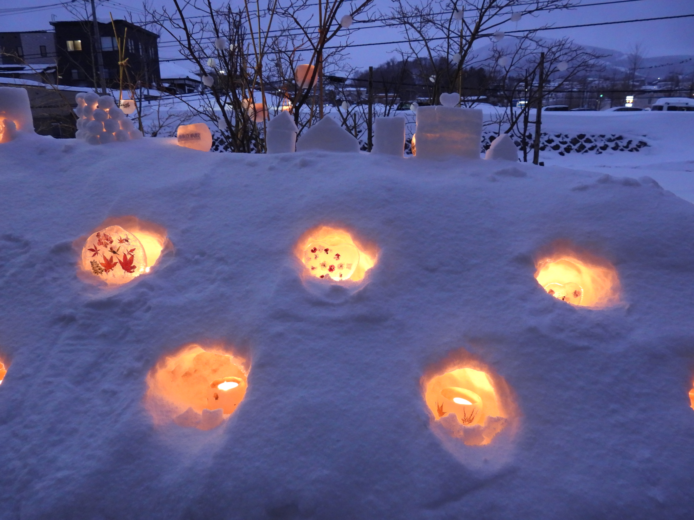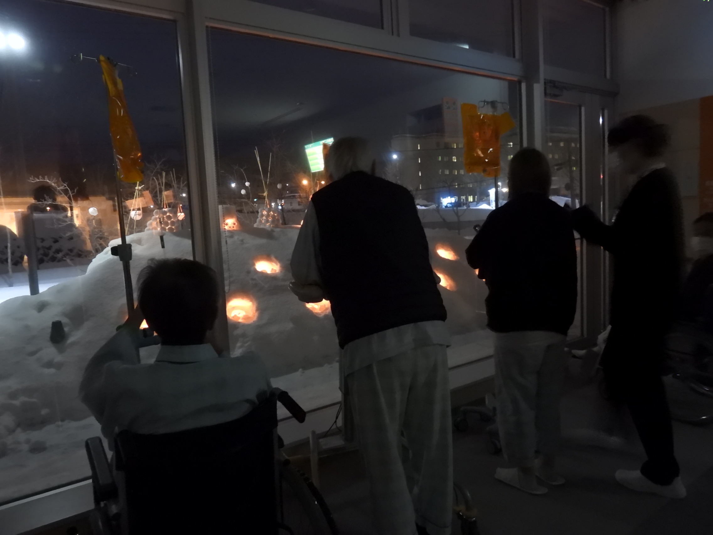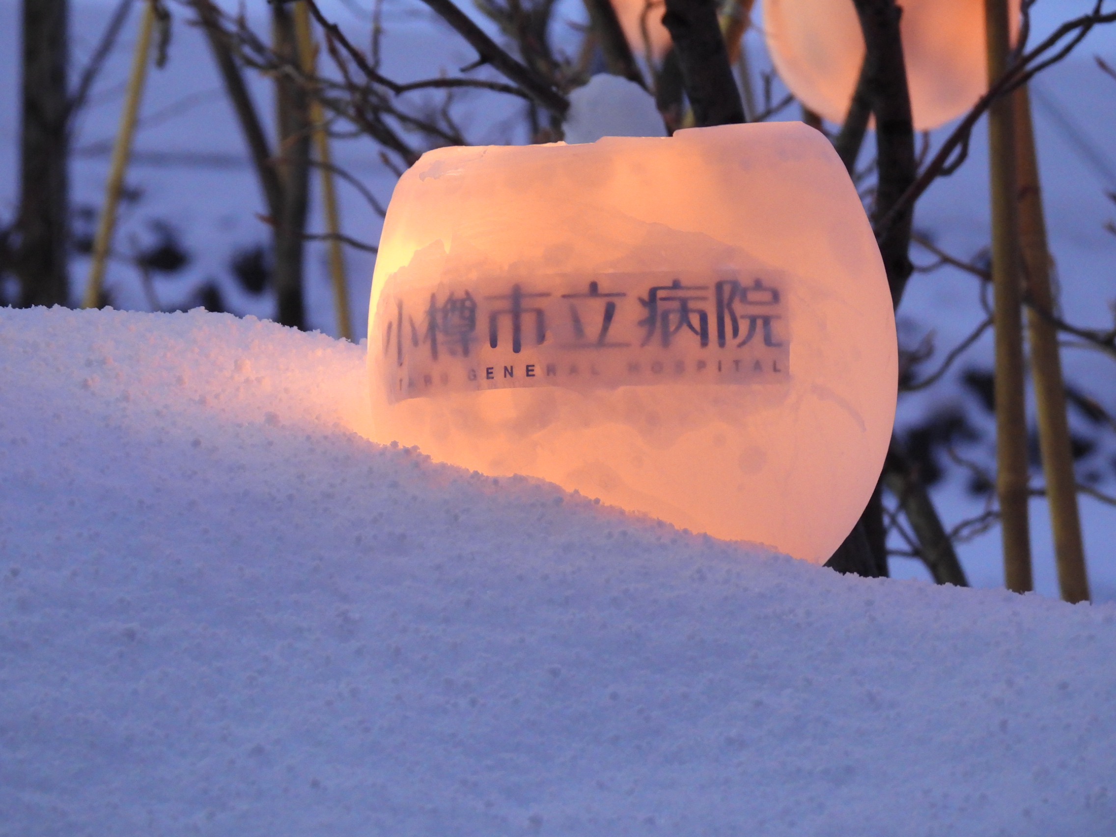 毎年、小樽雪あかりの路に合わせ、当院でもメモリアルガーデンにてオブジェを制作し、点灯しています。