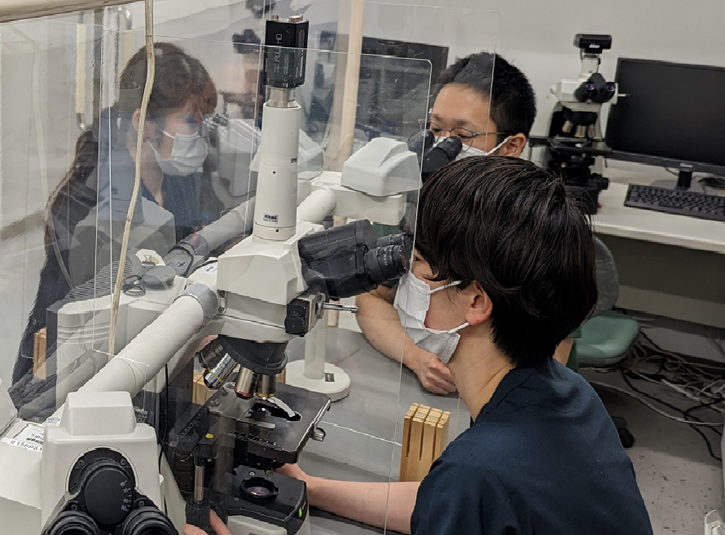 当院の病理検査部門は常勤病理医(2名)、臨床検査技師(6名のうち常時3名)で構成されています。病理医は日本病理学会から認定を受けた病理専門医、臨床検査技師は日本臨床細胞学会から認定を受けた細胞検査士が業務に携わっています。 病理検査は大きくわけて、病理組織診断・細胞診検査・病理解剖に分けられます。普段患者さんにお会いすることはなかなかありませんが、病理診断=最終診断であり、病院全体の診療に広く貢献する“縁の下の力持ち”的な役割を担っています。