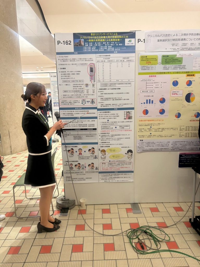 - 演者: 佐藤 礼菜(薬剤部 薬剤師 骨粗鬆症マネージャー) 「当院における骨折リエゾンサービス ~骨粗鬆症治療率向上のために薬剤師が出来ること~」