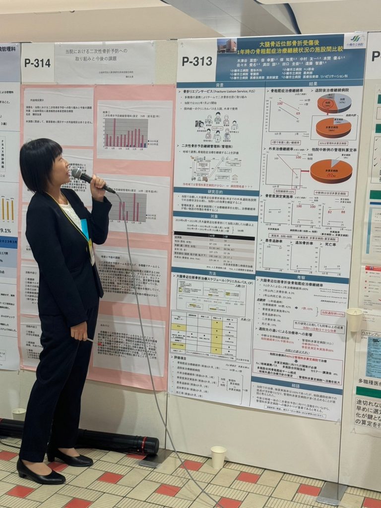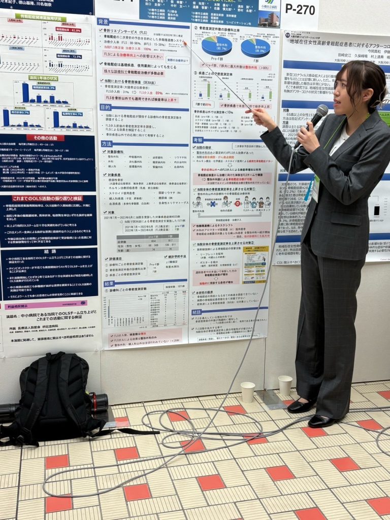 - 口演:満田 諒(病棟看護師) 「大腿骨近位部骨折後の骨粗鬆症治療における多職種連携介入の効果 ~骨粗鬆症治療・検査の介入率・継続率向上に向けて~」