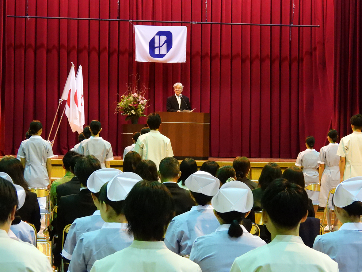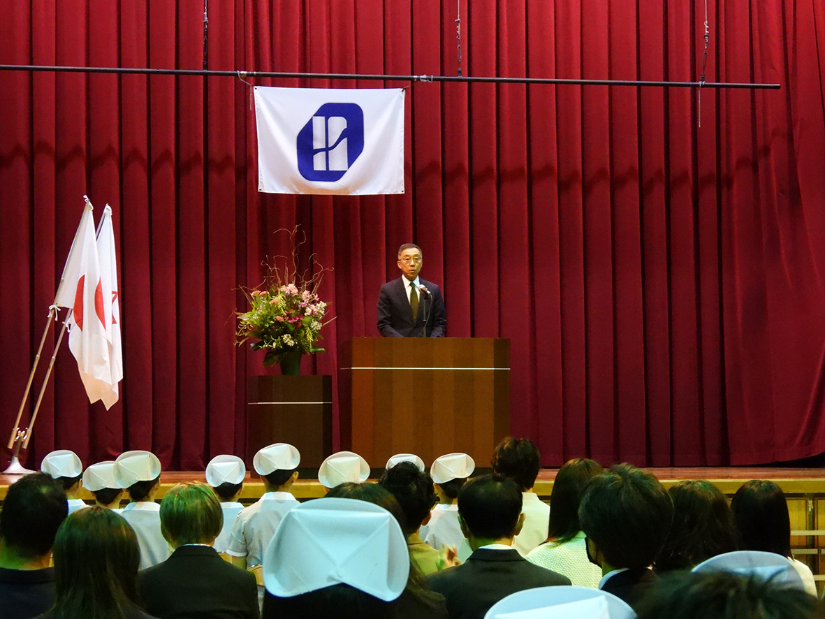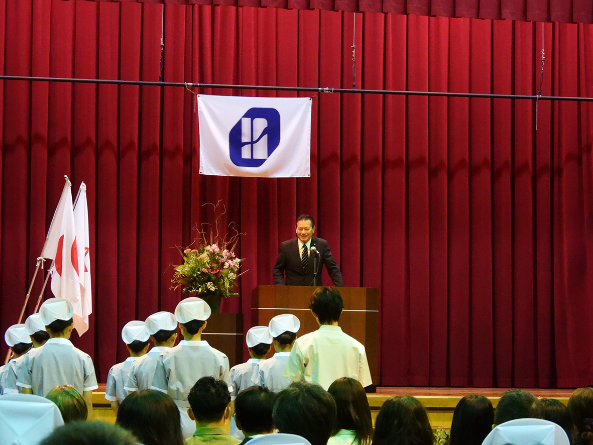 戴帽式はご家族や関係者が参列する中、馬渕正二学院長が式辞を述べ、迫俊哉小樽市長、鈴木喜明小樽市議会議長より祝辞をいただきました。上級生代表からは自らの体験も含めたこれからの実習に向けてのエールが送られました。