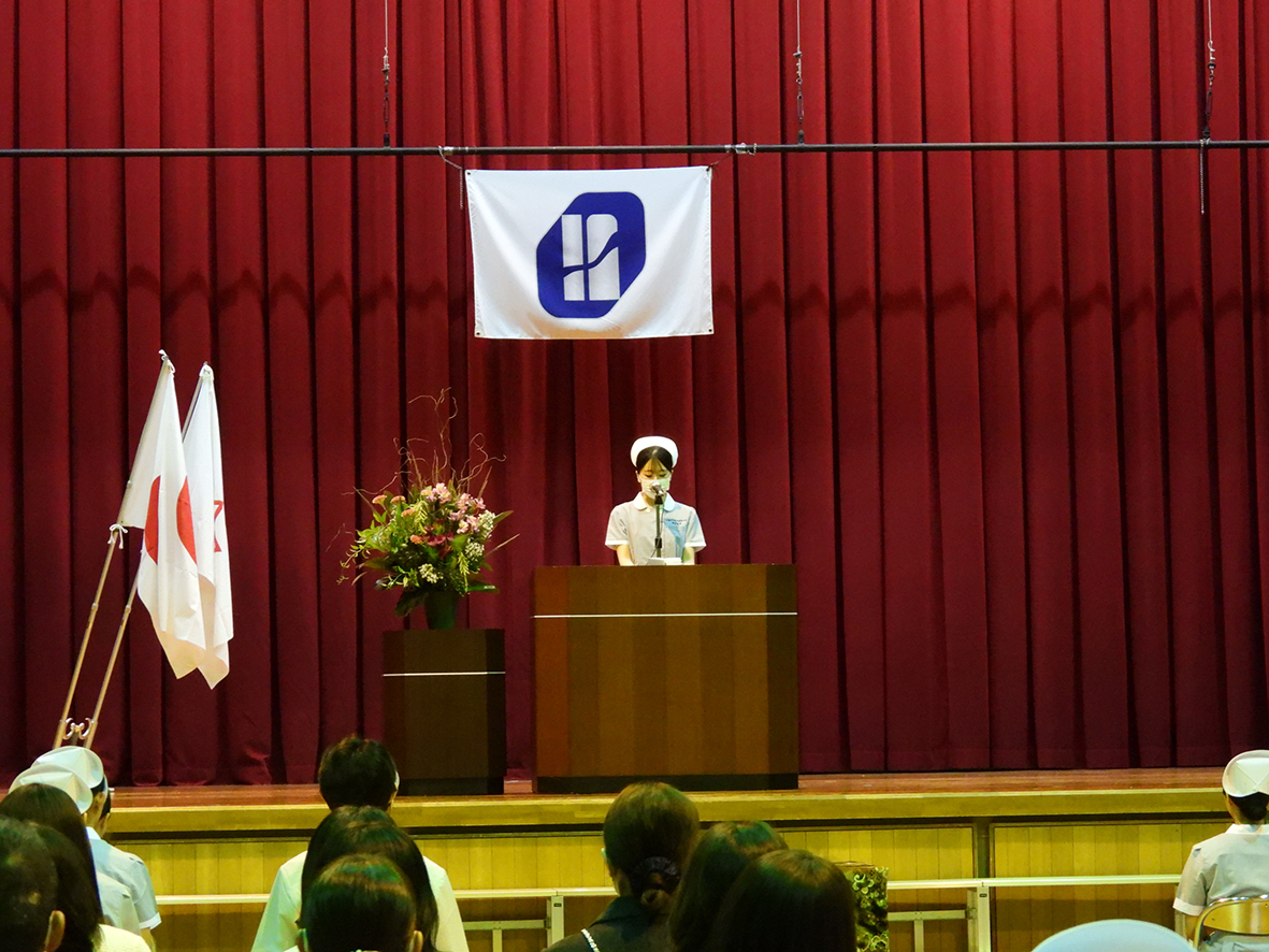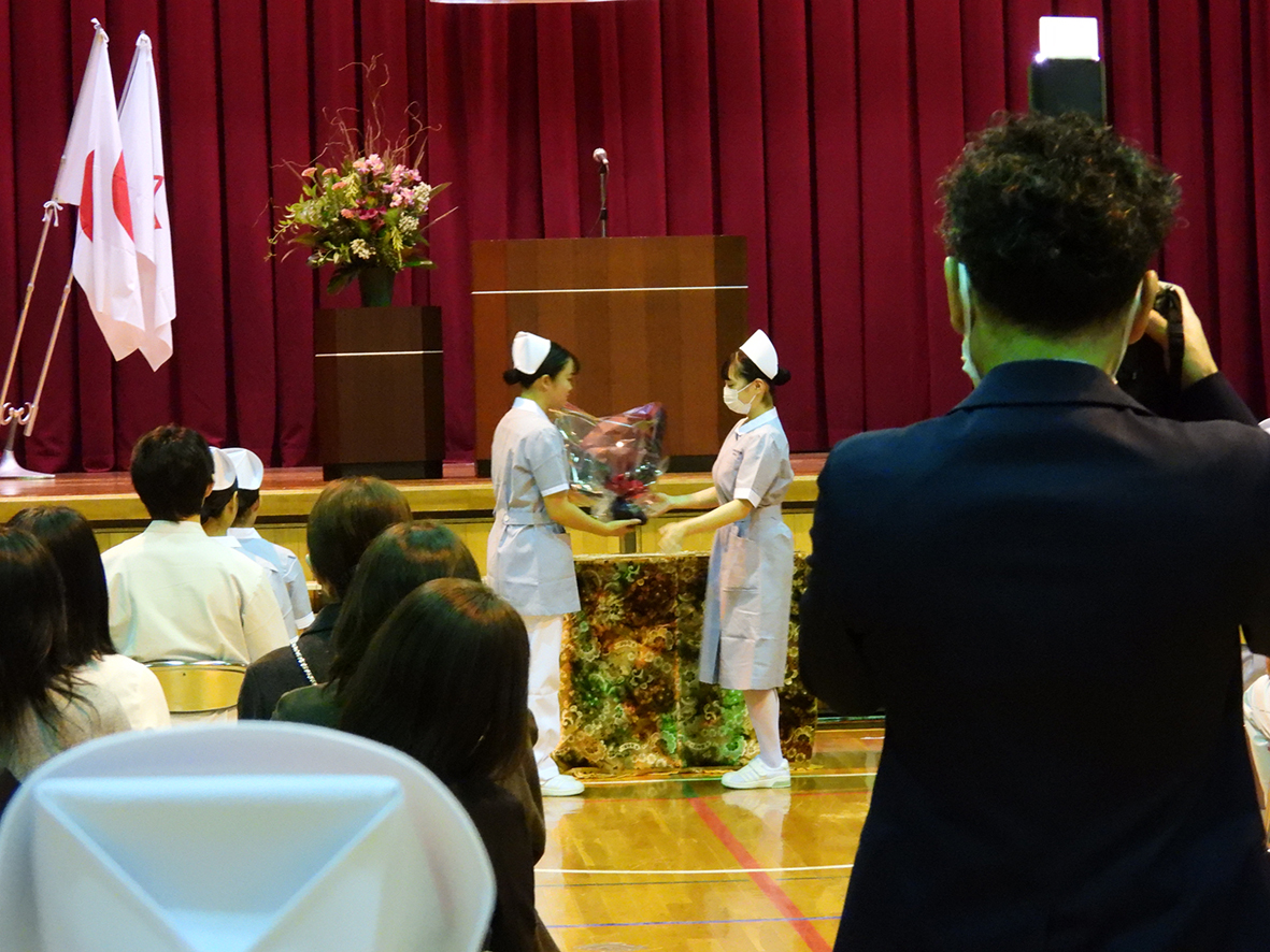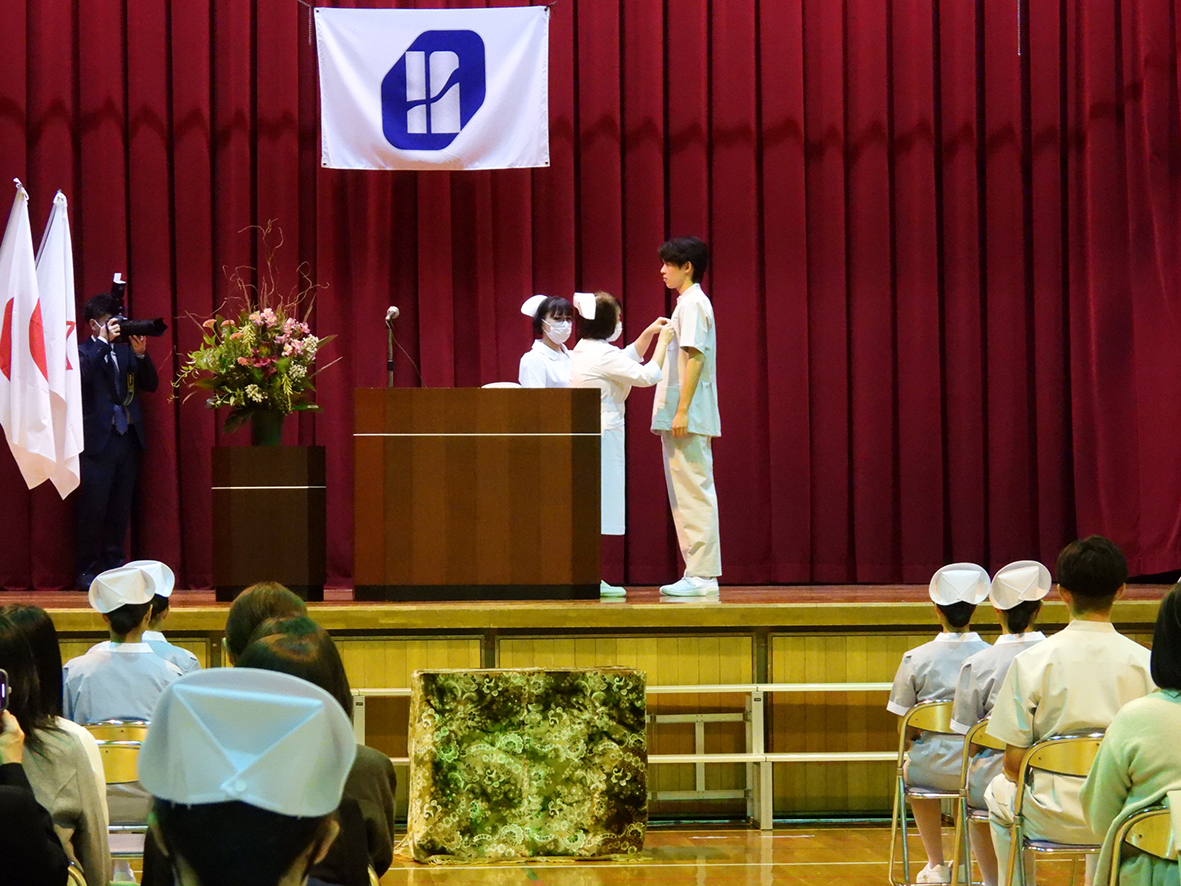 戴帽式はご家族や関係者が参列する中、馬渕正二学院長が式辞を述べ、迫俊哉小樽市長、鈴木喜明小樽市議会議長より祝辞をいただきました。上級生代表からは自らの体験も含めたこれからの実習に向けてのエールが送られました。
