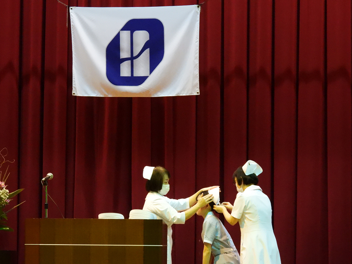 11月7日(金) 小樽市立高等看護学院にて第58回戴帽式を行いました。戴帽式は、看護学生が病院での実習を前にナースキャップを与えられ、看護に携わる者としての意識や責任感の自覚するための式です。現在は医療の現場で実際にナースキャップを被ることはありません。